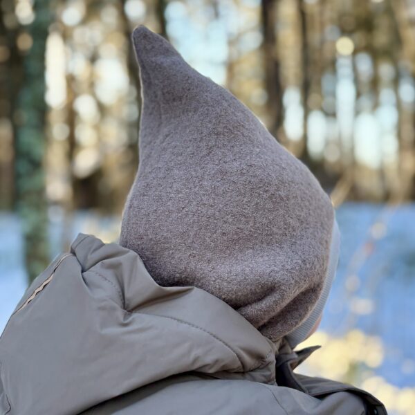 Kelle jaoks päkapikk, kelle jaoks haldjas. Samamoodi armsaks teeb see müts ikka! Vanutatud vill ei lase tuult läbi ning sobib kandmiseks ka meile tüüpilise lörtsise-vihmase talvega, sest ei lase peal märjaks minna.